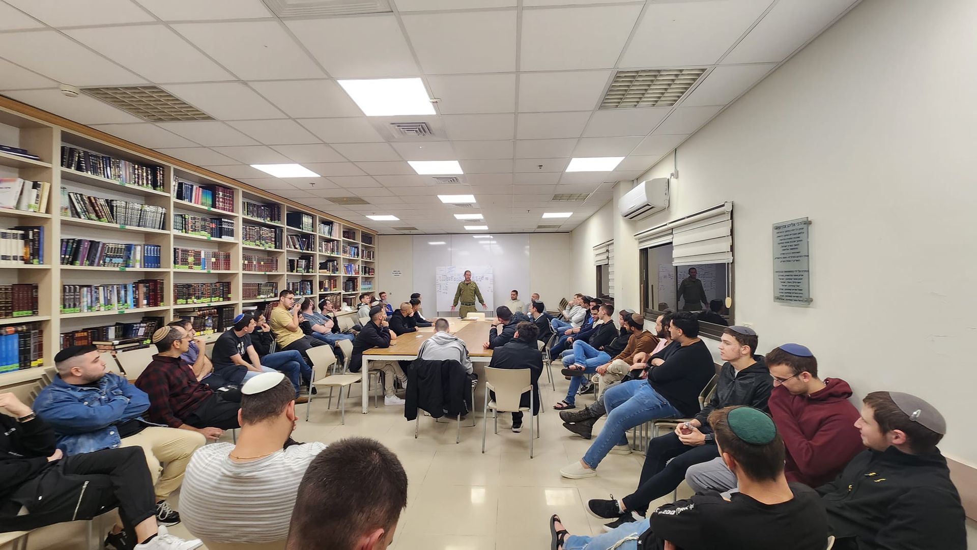 בסוף הלימוד, תלמידי הישיבה יחד עם הסטודנטים התכנסו בבית המדרש לשיחה קצרה מפי ראש הישיבה על חיבור היהדות בין דתיים לחילוניים.