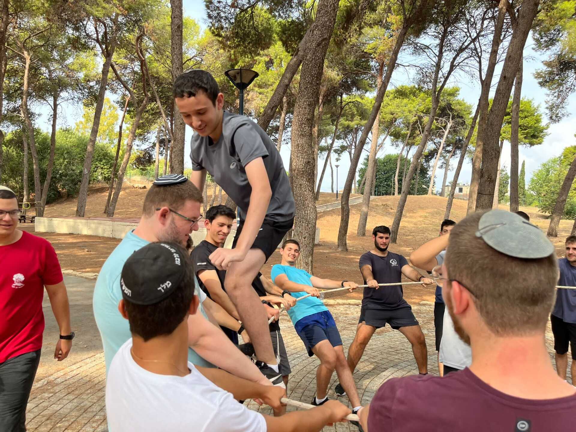 תלמידי שיעור ד' חזרו בשבוע שעבר לישיבה לאחר שירותם הצבאי ביחידות וחטיבות צה"ל השונות. חזרתם החגיגית נפתחה בהרקדה מרגשת ושמחה במיוחד של כלל תלמידי ורבני הישיבה, כך שסוף-סוף בישיבה נמצאים כלל השיעורים שאינם בשירות פעיל (אוהבים אתכם שיעור ג'!). משם המשיכו לשיחת פתיחה מפי ראש הישיבה הרב יוסי שטרן שחיזק את החבורה של השיעור ועל חזרתם המלאה לעולם התורה. לאחר מכן, המשיכו לגיבוש מהנה בפארק האתגרי בעכו, שם מעבר לגיבוש, שוחח איתם הרב אסף-חיים בהרב. בשיחת החיזוק הרב אמר: "אדם שקשור למשהו - הוא קשור אליו. לאה מלמדת אותנו שצריך השקעה כדי לבנות קשר. אתם בניתם קשר עם הקב"ה, עם המדינה ועם הצבא - הייתה פה מסירות נפש, הייתה פה דבקות, קישור לעם ישראל ולארץ ישראל. עכשיו, תהיה פה מסירות נפש דרך התורה". לאחר מכן, השיעור נהנה מהפארק האתגרי ומהקאנטרי בעיר ושיחה מפי הרב יגאל פסו והרב שלמה גוטמן. תודה לכל העוסקים במלאכה. שמחים בשמחת חזרתם הביתה אל הישיבה!