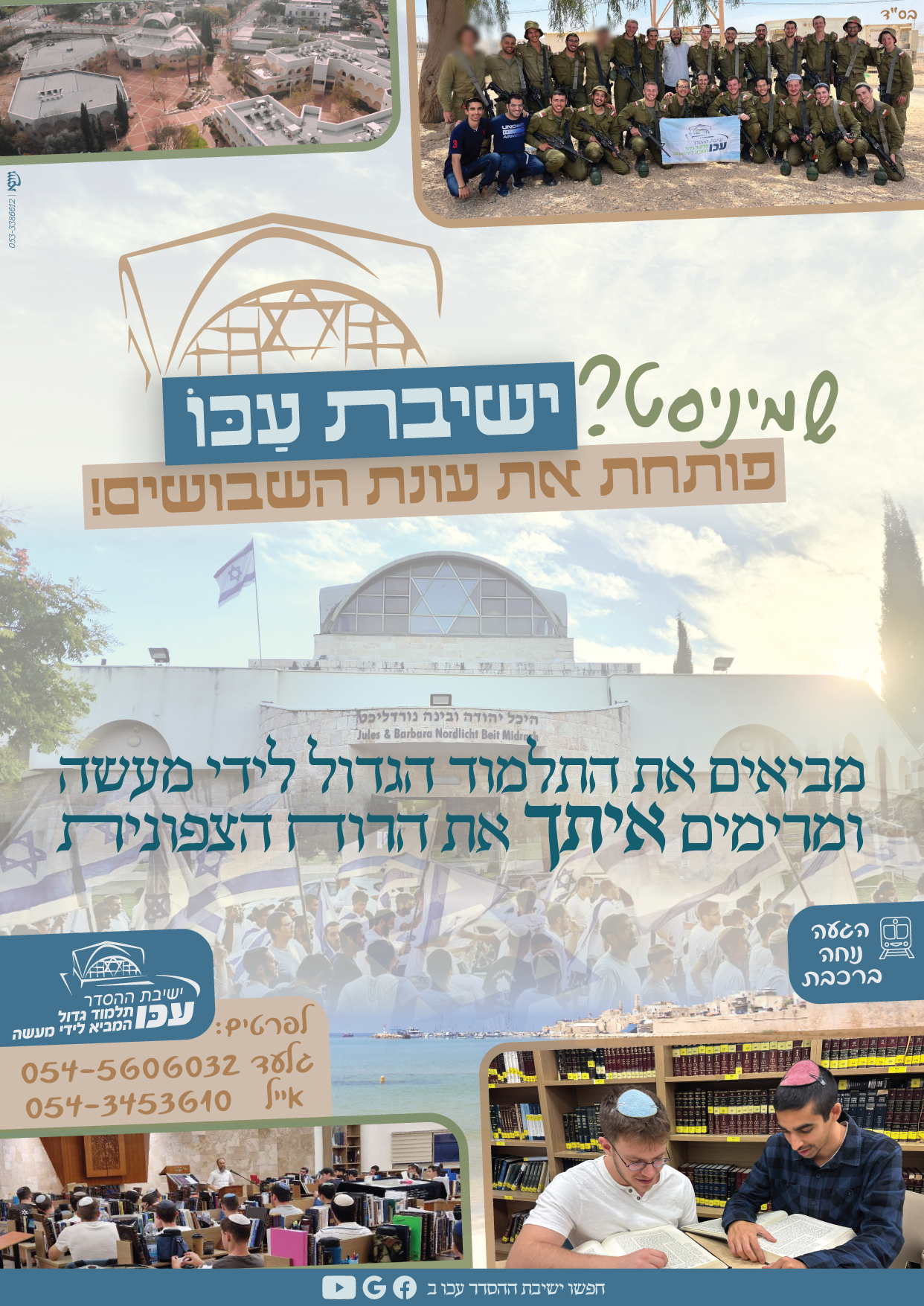כמידי שנה אנו מקבלים את השנה החדשה הבעל"ט במנהג יפה ומיוחד - חלוקת תפוח בדבש בליווי ברכה חמה לשכנינו - תושבי עכו היקרים. זהו מעשה קטן בפשטותו, אך גדול במשמעותו, שמבטא את הרצון להתחיל את השנה בשמחה וברכה. מעבר לכך, הישיבה מהווה מקור כוח רוחני לעיר עכו ולסביבת הגליל, ומחזקת את היהדות והתורה מתוך לב נקי ורצון לעשות טוב. בדרך זו, אנו מצליחים לשלב מסורת עם חיבור לבבות, ולהאיר את השנה הקרובה באור של תורה ושמחה.
