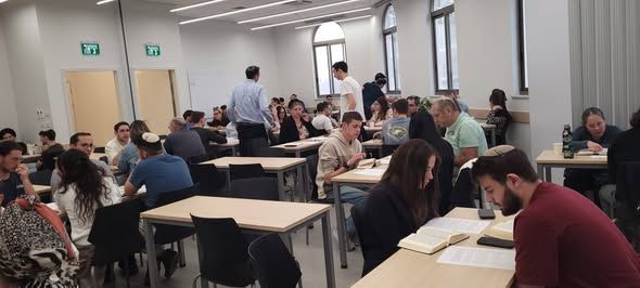 הערב נפתח בהתכנסות ולימוד מעניין בחברותות של התלמידים יחד עם האבות והאימהות, על שמשון הגיבור וחיילות בית דוד- שילוב של ישיבה וצבא כחלק אינטגרלי. באופן סמלי, הלימוד התקיים באולם 'דרכי נועם' ע"ש תלמידנו האהוב סמ"ר נועם איתן הי"ד שנפל במלחמה בעת שירותו הצבאי. הלימוד נסגר בשיעור מסכם מרתק של סגן רה"י הרב יגאל.